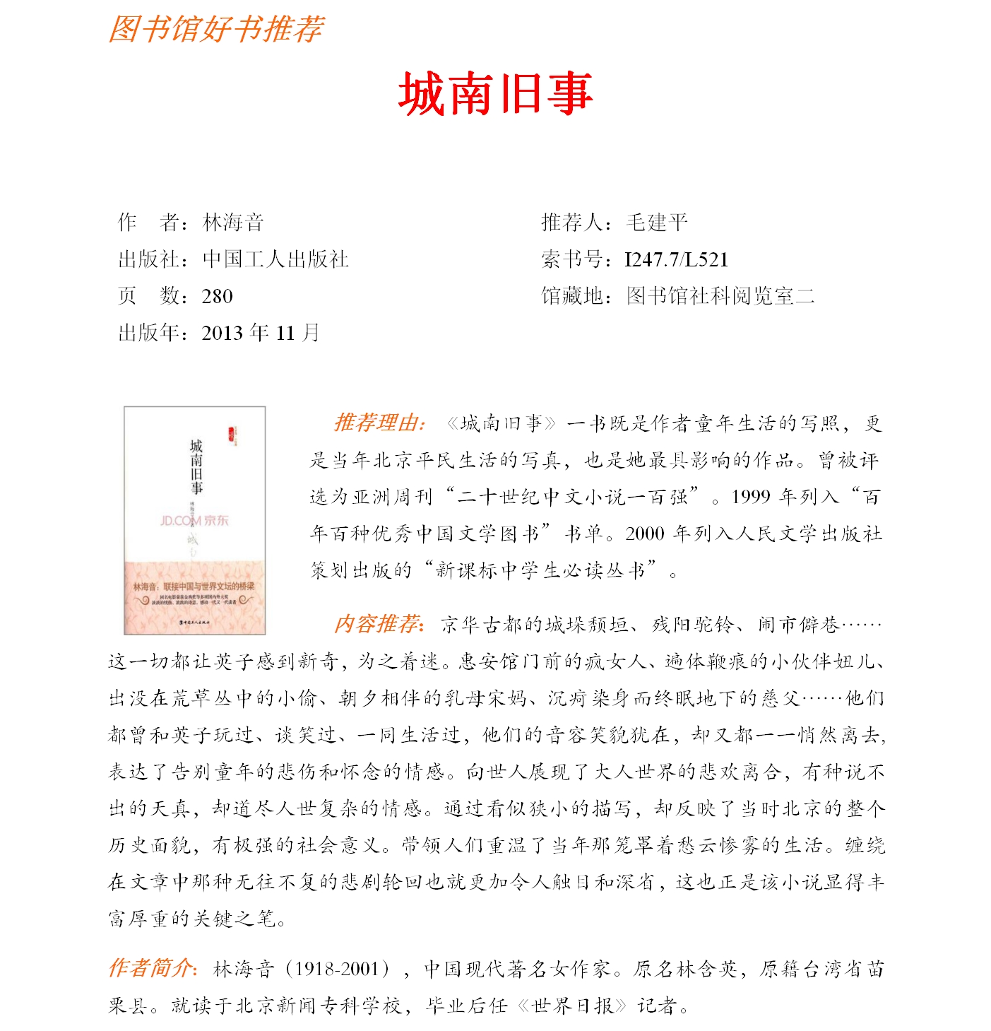 2016书目推荐第十五期(城南旧事)