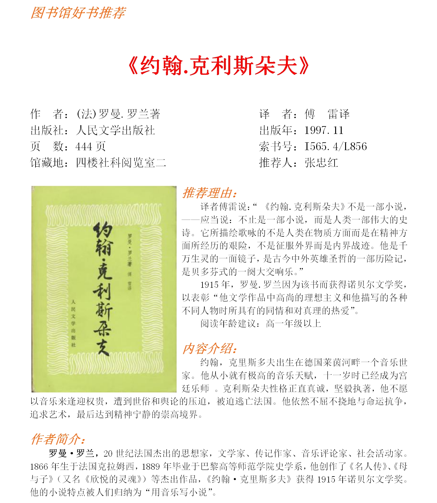 2016书目推荐第二十七期(约翰克里斯朵夫)