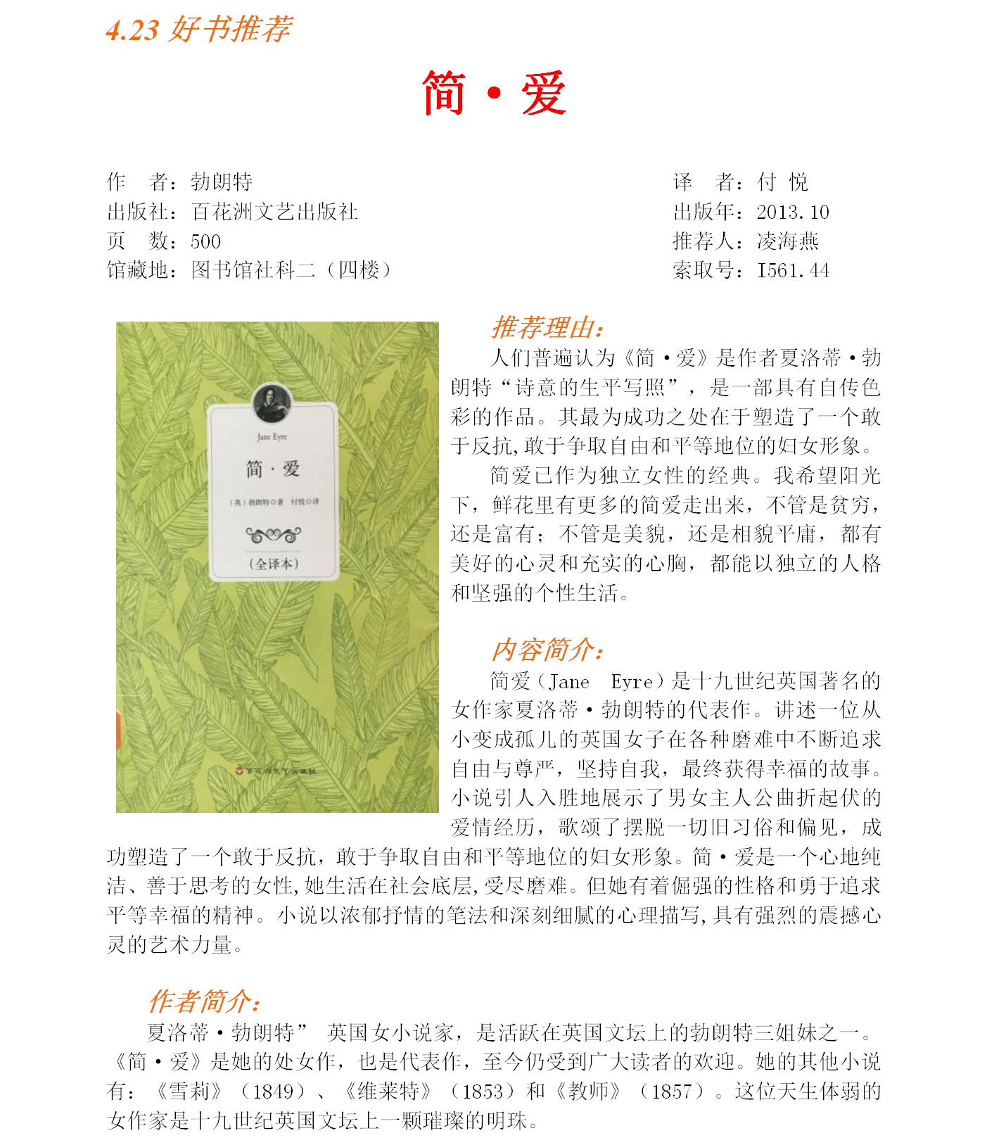 2017年好书推荐第八期(简爱)