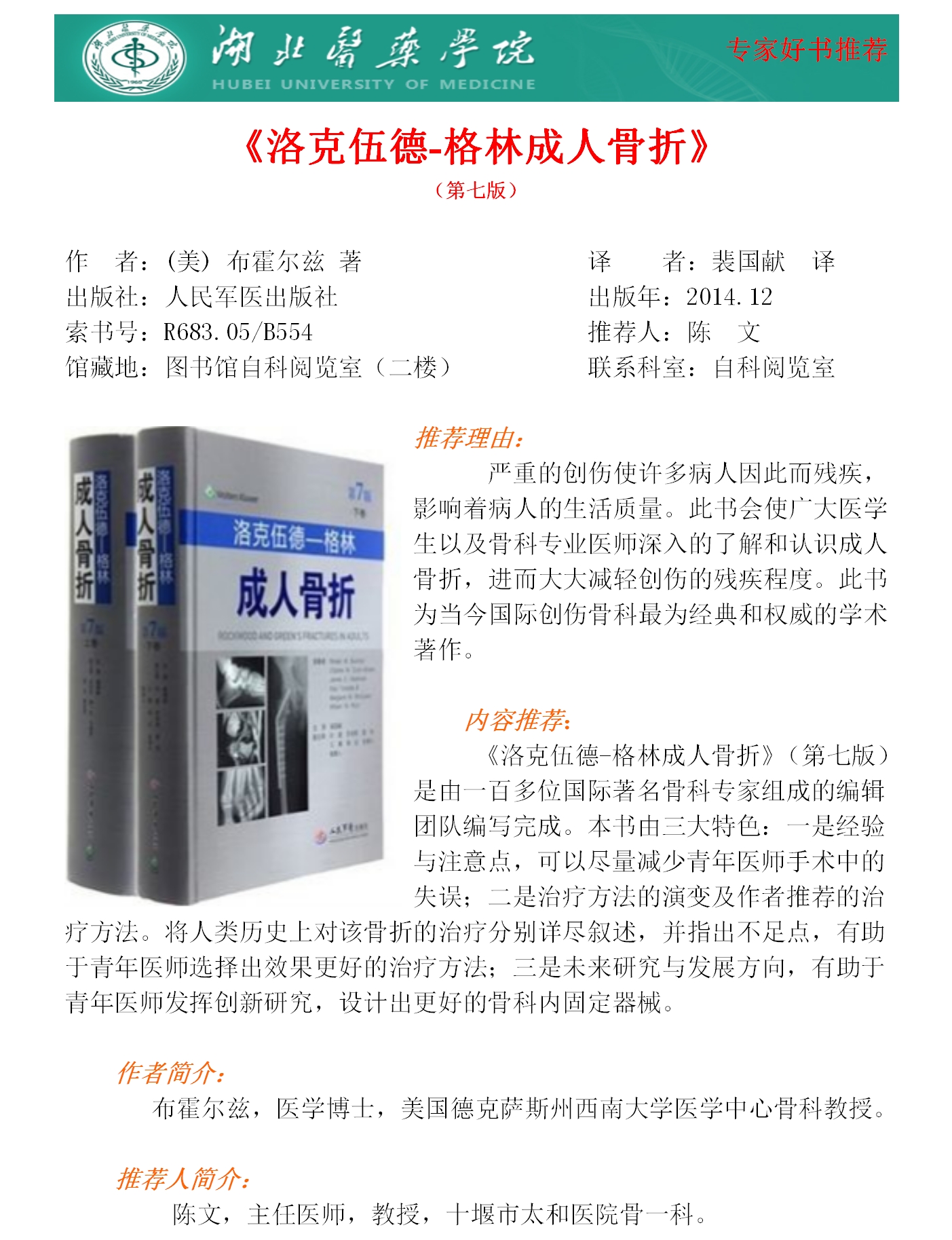 2017年好书推荐第十三期(洛克伍德-格林成人骨折)
