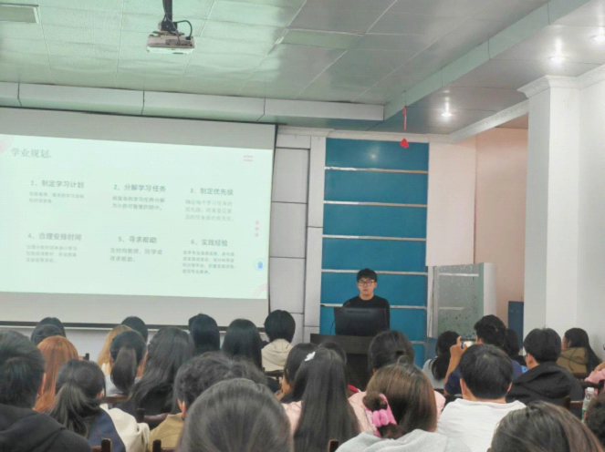 讲座在“当你告别高中生活,面对全新的大学生活是否感到迷茫?”的互动分享中拉开序幕。主讲人从学业规划、学生组织、科研创新、社会实践四个方面向大一新生分享他的大学生活和学习方法,帮助同学们梳理大学五年总目标及每一学年分目标,引导同学们的自主规划意识,明确如何探索自己的发展方向,实现自我发展需求。现场同学们积极互动交流,气氛热烈,主讲人针对提出的各种实际问题答疑解惑。通过“面对面”的交流,同学们深受鼓舞,表示会在今后的学习生活中脚踏实地,努力成为有理想、有担当的新时代大学生。