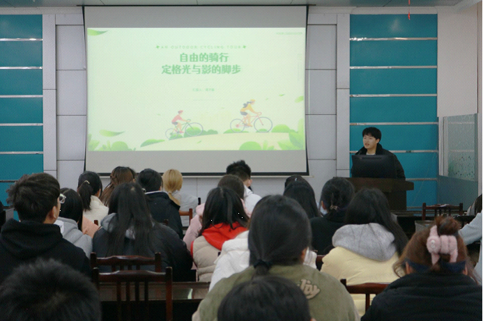 另一位21级护理专业谭子豪分享了自己在骑行中的所见所闻和体验,以及对于身体、心理、认知等方面的成长和变化,同时给大家介绍了骑行小知识和摄影作品背后的故事,用更有说服力的亲身经历为同学们开启了一场视觉上的自由骑行。