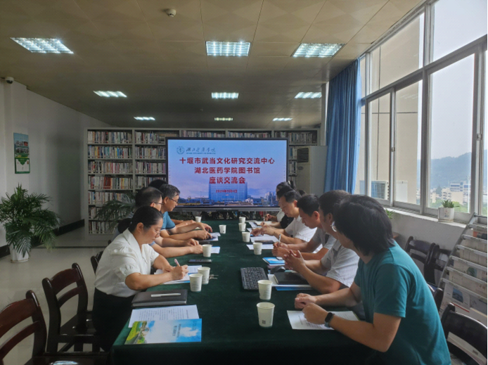 (通讯员邵文涛 张艳)9月4日上午,十堰市武当文化研究交流中心主任何朝波一行4人来校开展武当文化和科研工作座谈交流,图书馆馆长陈玉顺、副馆长吕丰、地方文献研究室负责人邵文涛、技术部负责人孙燕、馆员代表张艳、吕飞、金永清参加座谈。
