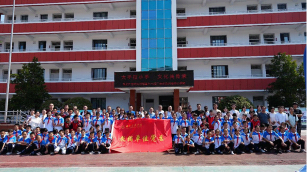(通讯员 张艳)9月27日上午,湖北医药学院教辅单位党委组织分工会会员和学生代表前往竹溪县县河镇中心学校开展“大手拉小手、文化共传承—悦读·领航”武当杏林·同心服务活动。校图书馆馆长陈玉顺、临床技能教学培训中心主任许珊、信息网络中心主任吴静、县河镇中心学校校长黄鹏、副校长刘成金、工会主席代元平、教辅单位分工会部分党员职工、统战人士、杏林书香志愿服务队学生代表、留学生代表、湖北医药学院驻村工作队钱江、关锐等同志参加了本次活动。