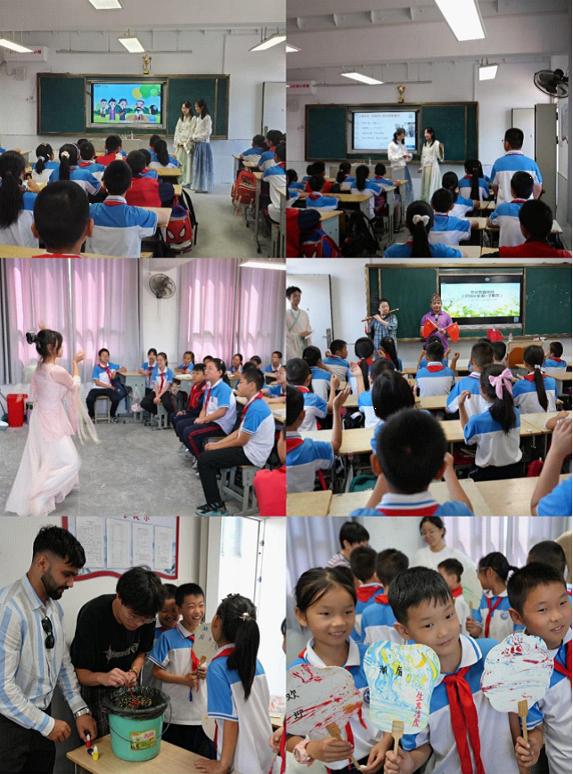 在文化传承活动中,杏林书香志愿服务队的同学为四年级学生讲解了中国的扇文化知识,详细介绍了漆扇的历史渊源、制作工艺、文化内涵、艺术价值等方面的知识。随后教辅单位分工会职工们一起手把手教小朋友做起了漆扇,大家发挥自己的创意,设计出独特的图案和色彩搭配。在制作过程中师生们相互帮助,共同探讨制作技巧,现场欢声笑语不断,气氛热烈而温馨。同时还设置了经典诗句接龙环节,通过趣味互动的方式,进一步加深了大家对中华优秀传统文化的理解和认同。
