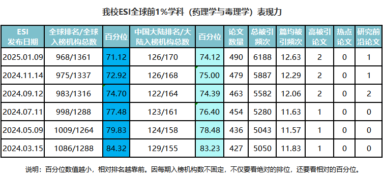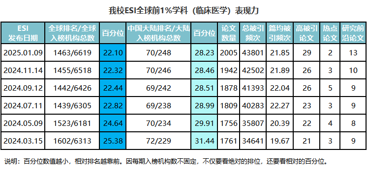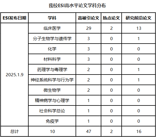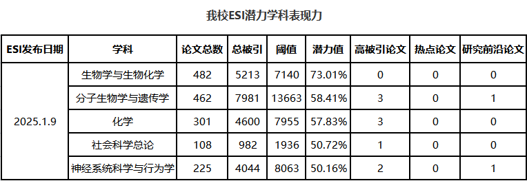 我校2025年1月ESI数据动态