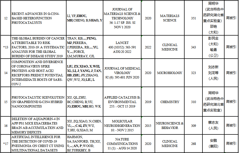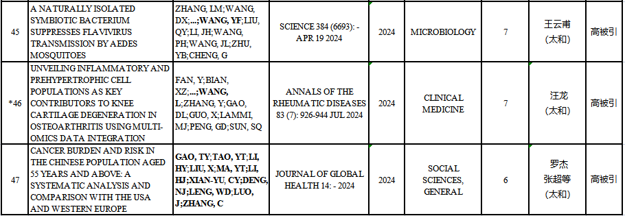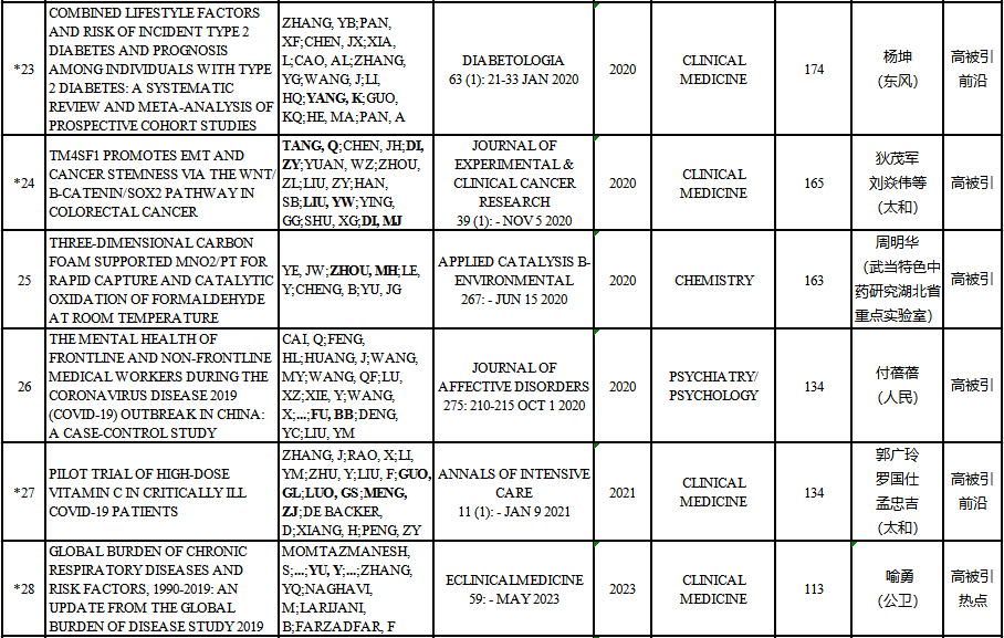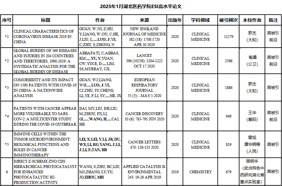 附表:我校2025年1月ESI高水平论文