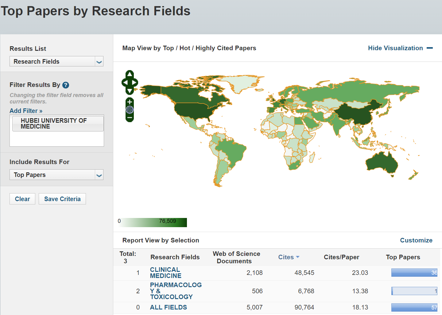 本期我校被ESI收录的论文总数为5007篇(Web of Science 核心合集的SCI-E/SSCI中收录的上述时间范围ARTICLE和REVIEW类型的论文数),被引频次总计90764次(在Web of Science 核心合集的SCI-E/SSCI/A&HCI中的被引用次数),篇均被引频次18.13,高水平论文57篇。其中,高被引论文57篇,热点论文6篇,研究前沿论文17篇。