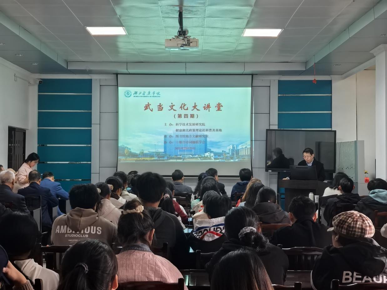 (本网讯 通讯员 邵文涛)10月26日下午,省社科科普基地武当文化大讲堂第四期在学校图书馆一楼学术报告厅精彩开讲,现场座无虚席。武汉大学图书馆原馆长、信息管理学院教授、博士生导师王新才以《绝知诗意在寻常》为题,为师生带来了一场兼具学术深度与生活温度的诗词文化盛宴。讲座由图书馆馆长陈玉顺主持。