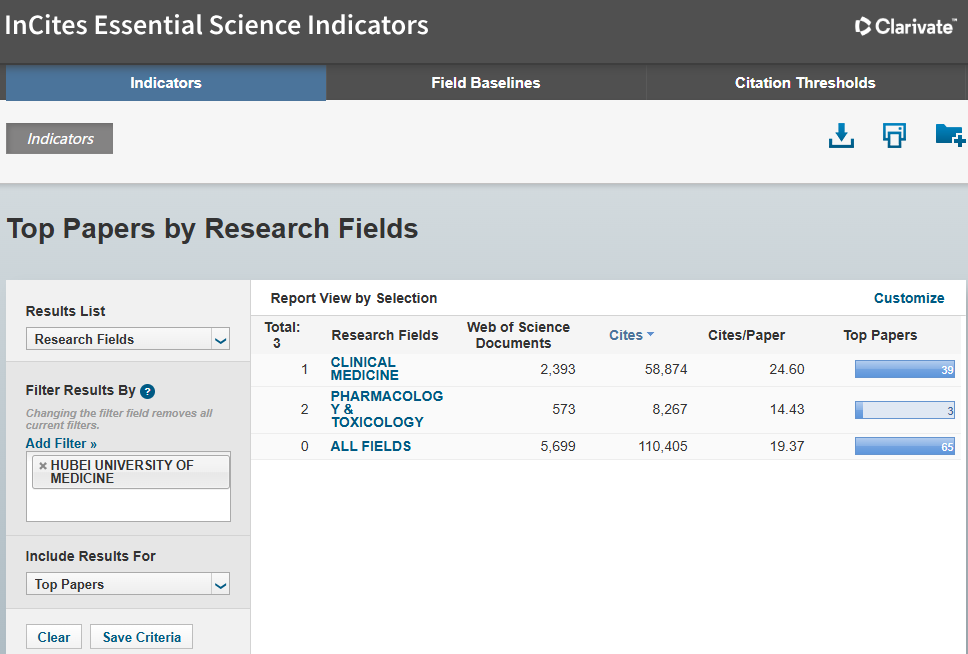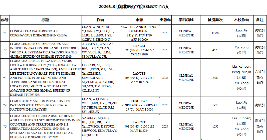 我校有2个学科已进入ESI全球前1%,为临床医学(ClinicalMedicine)、药理学与毒理学(Pharmacology & Toxicology)。
